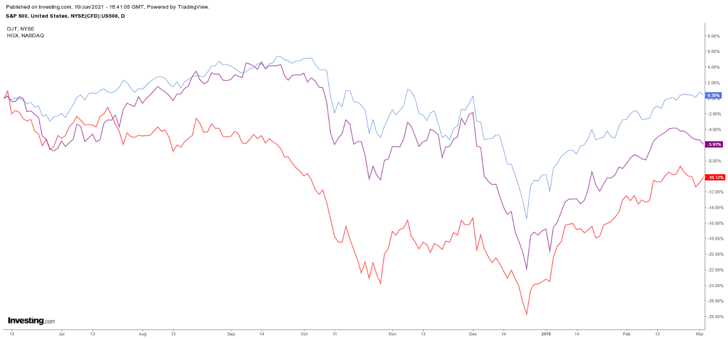 2018 में, हाउसिंग इंडेक्स जुलाई में शुरू होने वाले एसएंडपी 500 से अलग होना शुरू हुआ। सितंबर के मध्य तक डॉव ट्रांसपोर्ट्स एसएंडपी से अलग होना शुरू हुआ।